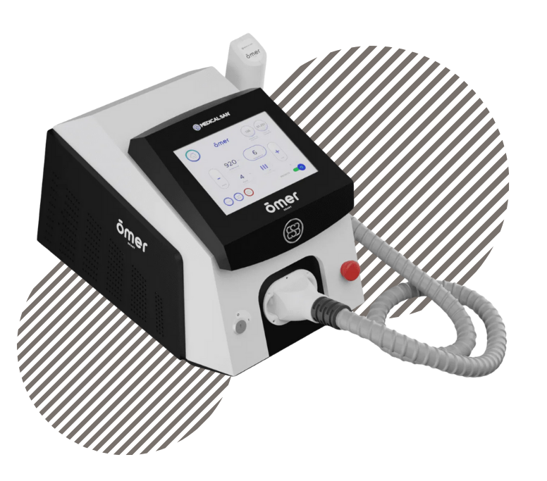 O Ômer Smart é um equipamento portátil de laser Q-Switched com tecnologia de nanossegundos, desenvolvido para remoção eficaz e segura de tatuagens e micropigmentações. Conta com dois comprimentos de onda (532 nm e 1064 nm), permitindo atuação em pigmentos claros e escuros, além de alta energia por pulso (até 1000 mJ) e pulso ultrarrápido (5 ns), que aumentam a eficácia e reduzem danos à pele.
